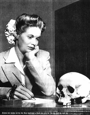 有名なのは日本兵の頭蓋骨を送ってくれた米兵に礼状を書くガールフレンドの写真として、ライフの昭和十九年(一九四四年)五月二二日号に掲載された写真だと思います。